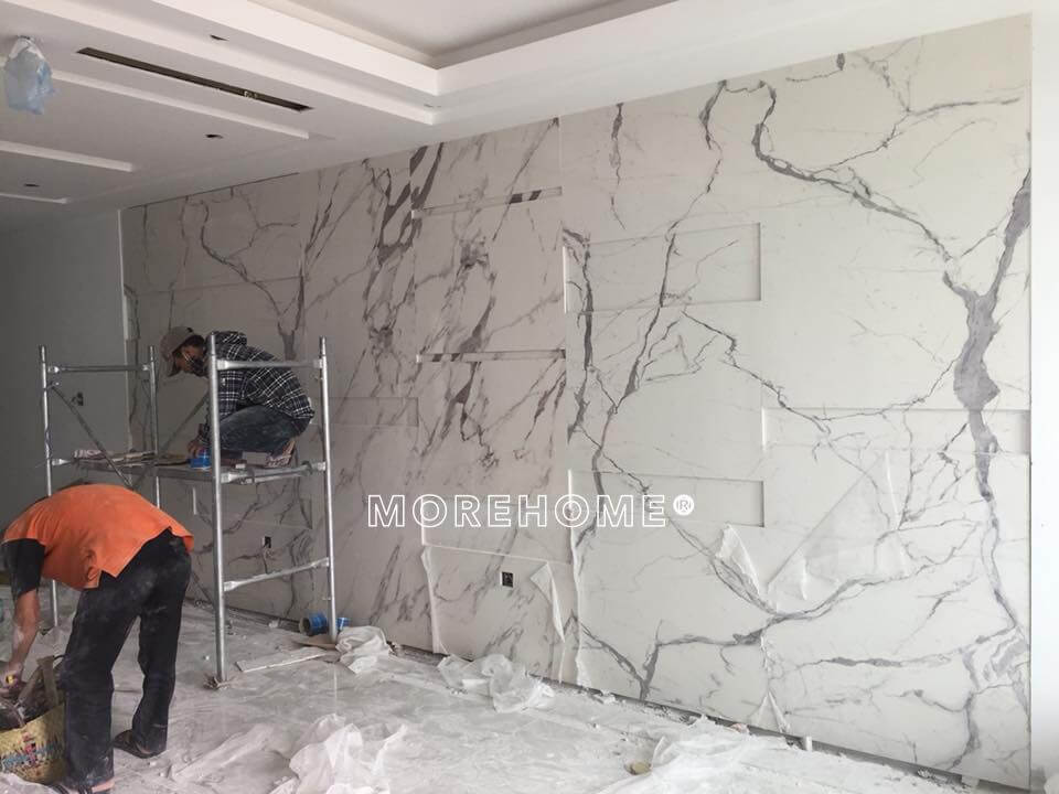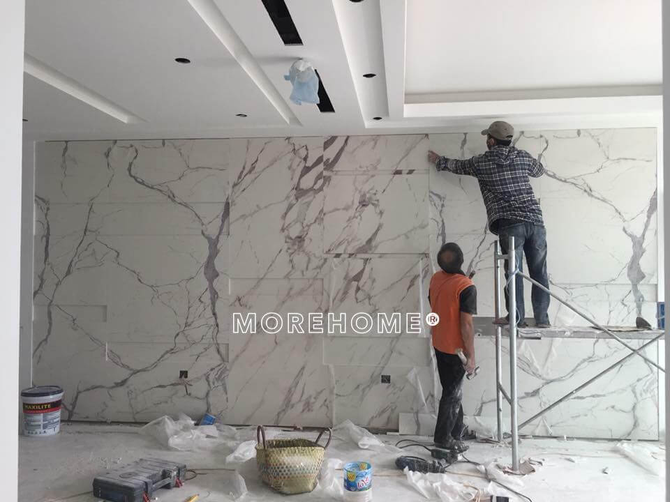 Lắp đặt đá nhân tạo ốp tường tại chung cư Mandarin Hòa Phát