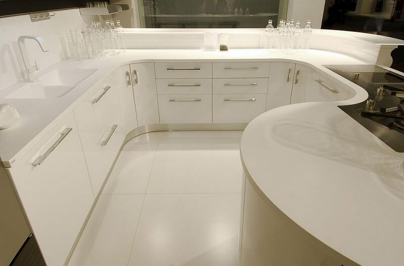 Ngoài ứng dụng làm đá ốp mặt bàn bếp, tủ bếp, đảo bếp, đá nhân tạo hi-macs màu trắng S028 còn được ứng dụng rộng rãi trong nhiều lĩnh vực và không gian như: đá nhân tạo ốp phòng khách, đá ốp lavabo, mặt bàn ăn đá nhân tạo, mặt bàn làm việc, cầu thang, bệnh viện...Dưới đây là hình ảnh thực tế của mẫu đá nhân tạo hi-macs mã màu S028 có lẽ bạn muốn xem: