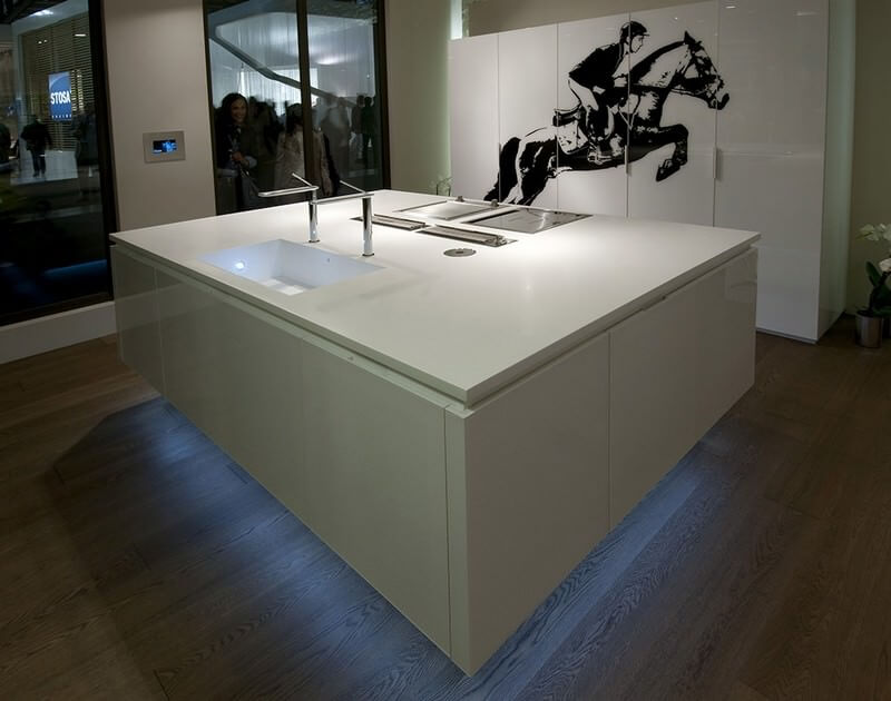 Bạn biết không? Ngoài dòng đá nhân tạo solid surface này ra thì còn có nhiều dòng đá khác như đá tự nhiên, đá thạch anh…đều được sử dụng trong nhiều không gian phòng bếp. Nhưng tuy nhiên, trong thời gian sử dụng: đá ốp bếp dòng đá tự nhiên bị ố vàng do tác động của nhiệt, bị nứt do va đập, khó vệ sinh, lại không có khả năng kháng khuẩn. Vì thế mà dần dần, dòng đá tự nhiên ốp mặt bếp không được sử dụng nhiều trong ốp mặt bàn bếp, tủ bếp hay làm đảo bếp. Thay thế vào đó là sản phẩm đá nhân tạo hàn quốc hi-macs ( solid surface). Bằng những cuộc thì nghiệm nghiêm ngặt về sự va đập, sự tác động của nhiệt cao 280 độ C trong 10 phút, thí nghiệm với tia UV, thí nghiệm uốn bằng nhiệt trong 1h với 170 độ C =>> Đá Hi-macs: Không bị nứt mẻ, không bị ố vàng, vẫn giữ nguyên màu, dễ dàng vệ sinh, có khả năng kháng khuẩn, hóa chất, an toàn cho người sử dụng và có khả năng tạo hình cực ấn tượng.