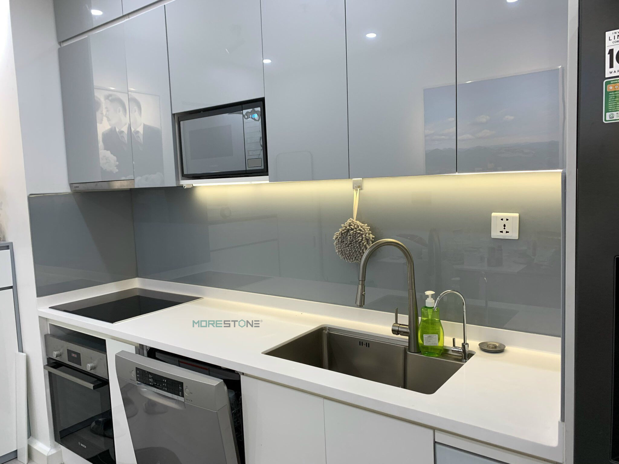 Công trình thi công thực tế, Thi công đá nhân tạo solid surface, Đá ốp bếp