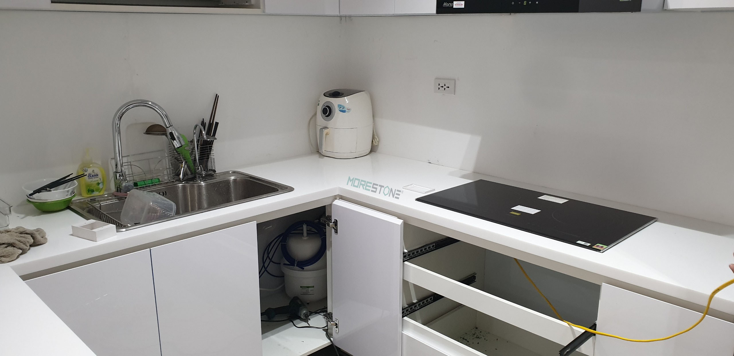 Công trình thi công thực tế, Thi công đá nhân tạo solid surface, Đá ốp bàn đảo, Đá ốp bếp, Đá ốp quầy bar