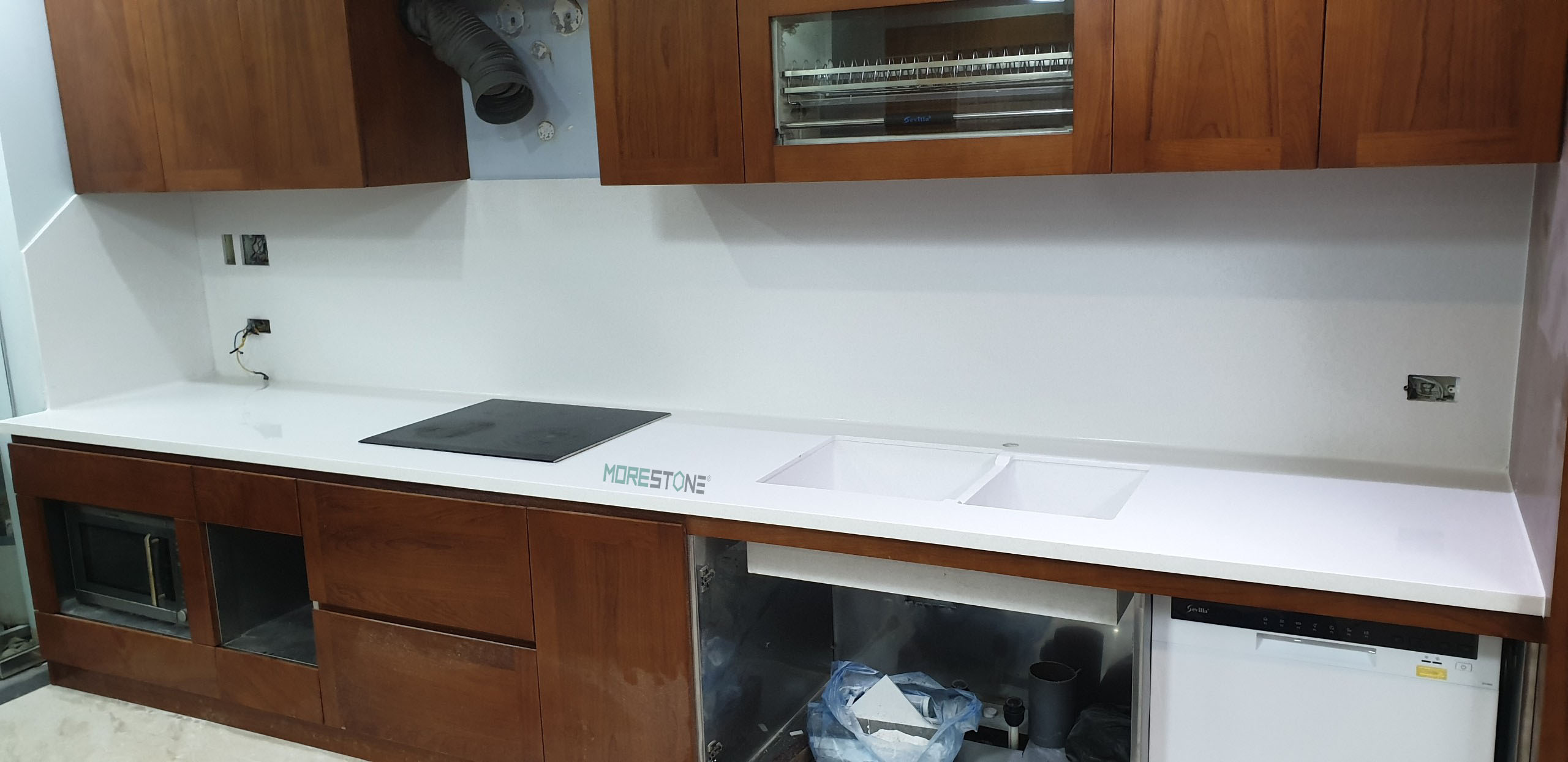đá bếp hàn quốc , đá bếp nhân tạo , đá ốp tường bếp , thi công đá bếp