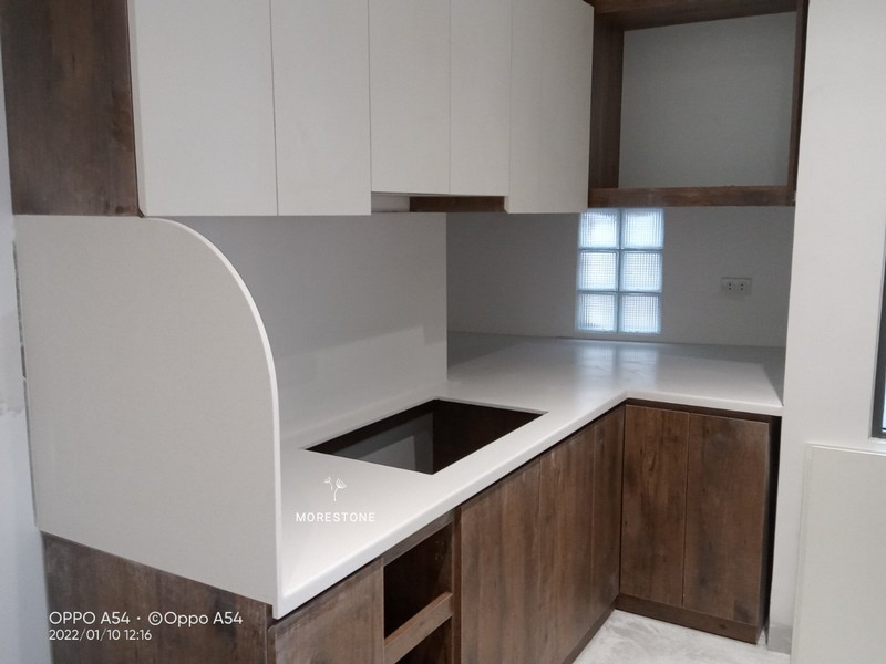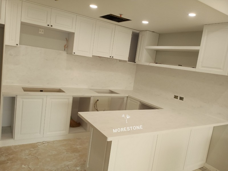 Mẫu đá bếp màu trắng cho không gian phòng bếp chống ngấm ố