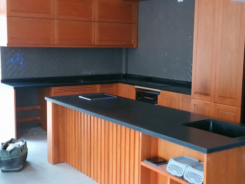 đá bếp màu đen , đá bếp kết hợp đen trắng , đá bếp chống ngấm ố