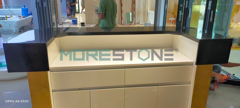 Thi công ốp mặt đá quầy lễ tần, uốn cong cạnh 2 bênMã đá: G047