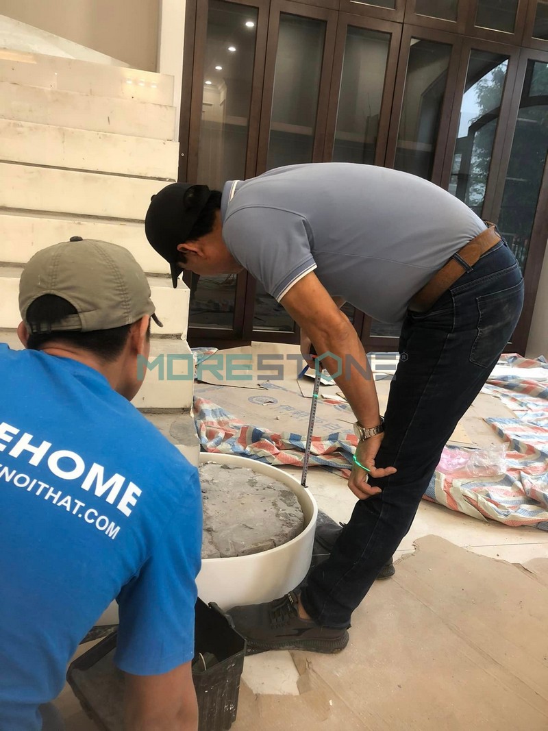 Thi công đá ốp bếp và đá cổ bậc cầu thang tại biệt thự Vinhomes Marina Hải Phòng