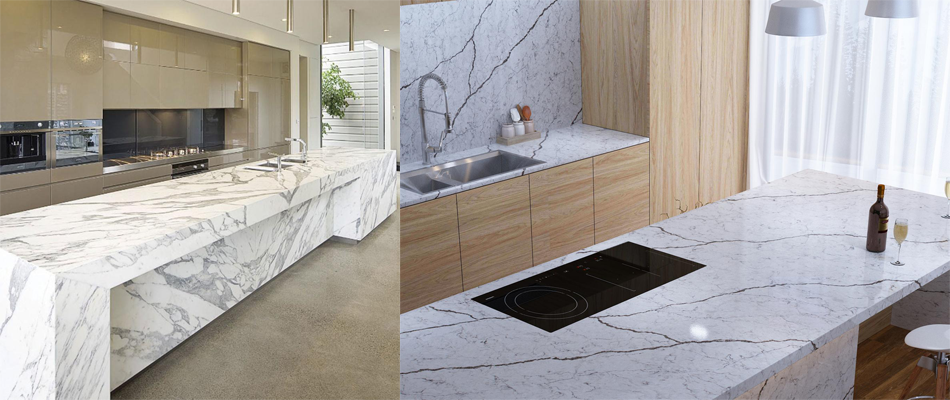 Đá mặt bếp Marble không cứng bằng đá mặt bếp Granit, tuy nhiên đá marble có vân tự nhiên sống động và màu sắc tươi tắn hơn bất kỳ loại đá nào. Đá Marble có tính chất mềm, xốp nên dễ thấm nước hơn đá Granit. Thế nên đá Marble lại thêm một nhược điểm là dễ thấm nước, biến đổi màu không đẹp như ban đầu.
