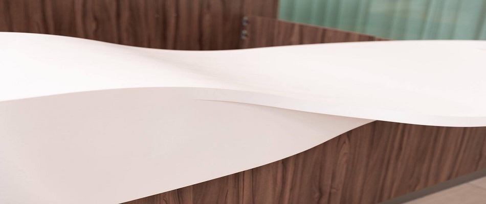 - Biểu hiện: Sản phẩm khác có hiện tượng đổi màu và nứt bể, đá HIMACS uốn cong linh hoạt