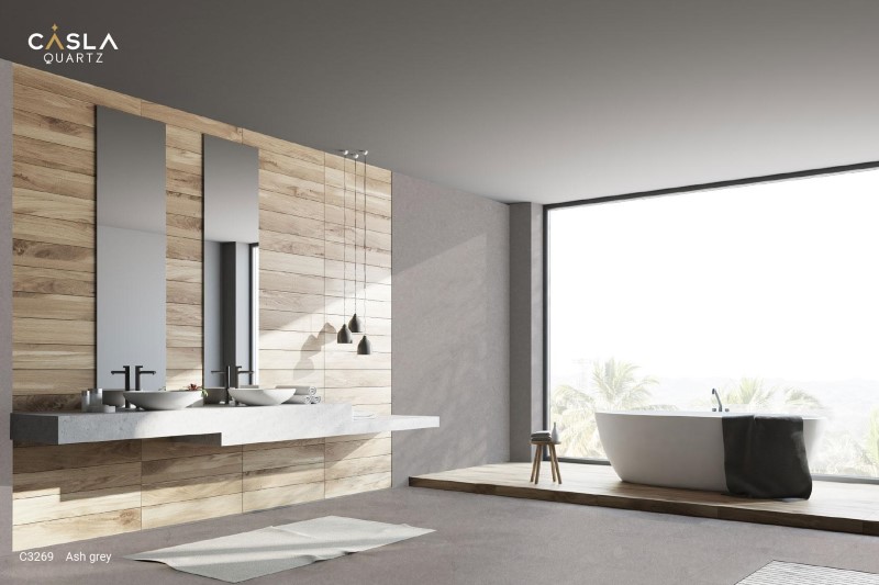 Ấn tượng với mẫu đá ốp tường nhà tắm nhân tạo Casla Quartz hiện đại, tiện nghi.