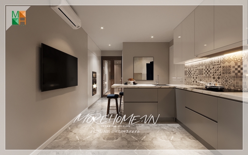 Tủ bếp được thiết kế mang phong cách hiện đại