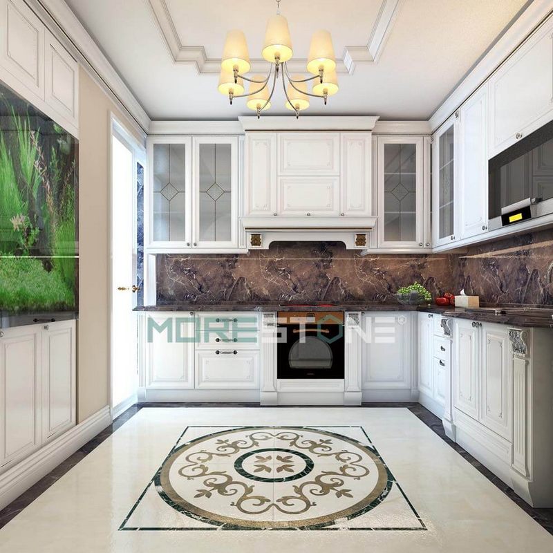Hoa văn đá có nhiều chi tiết tinh tế, đối xứng với nhau và nổi bật trên sàn của phòng bếp, biệt thự và nhà phố.