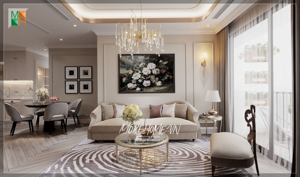 Bố trí sofa trong phòng khách cũng đóng vai trò quan trọng trong việc tạo điểm nhấn cho căn phòng. Việc đặt sofa ở giữa phòng giúp tạo ra không gian mở, thoáng đãng hoặc có thể đặt ngang hoặc dọc theo tường tùy vào kiểu dáng và kích thước của căn hộ. Đồng thời, việc kết hợp với các chi tiết trang trí như gối tựa, rug và vật liệu lót giúp làm cho không gian sinh động và sang trọng hơn.