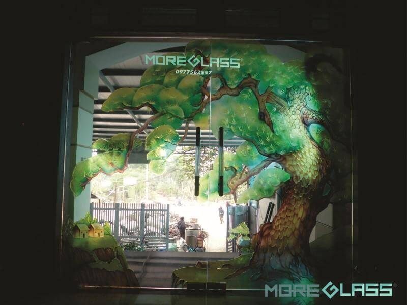 Những mẫu thiết kế cửa kính cường lực điêu khắc cây đại thụ đã tạo ra ấn tượng với những ý nghĩa mang lại sự vững chắc và trường tồn cho gia chủ.