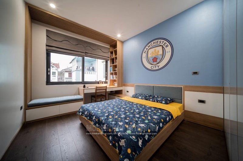 Hình ảnh thi công nội thất phòng ngủ con trai bé trai hiện đại bằng gỗ công nghiệp thực tế đã được thực hiện tại chung cư Imperia Garden Nguyễn Huy Tưởng Thanh Xuân Hà Nội.