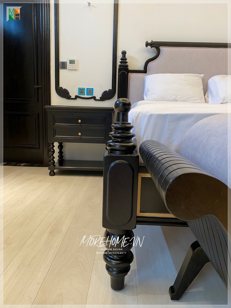 Tô điểm không gian tiện nghi và thẩm mỹ bằng việc thi công tab đầu giường gỗ tự nhiên theo phong cách Indochine.